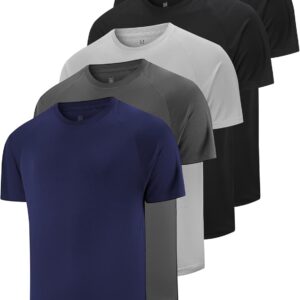 5 Pack Men’s Dry Fit T Shirts Athletic Running Gym Workout Short Sleeve Tee Shirts for Men