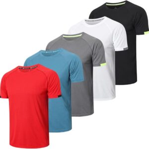 HUAKANG 5 Pack Workout Shirts for Men Quick Dry Crew Neck Short Sleeve Tee Tops Moisture Wicking Athletic Light Gym T-Shirts