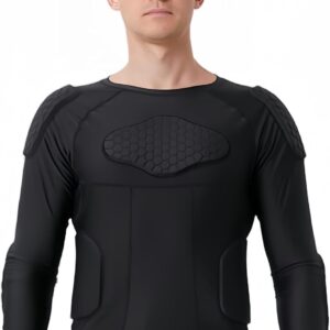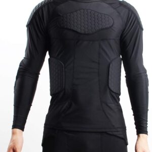 - Padded sportswear designed in shoulders,elbows, ribs, chest and back to reduce hurting during tough sports